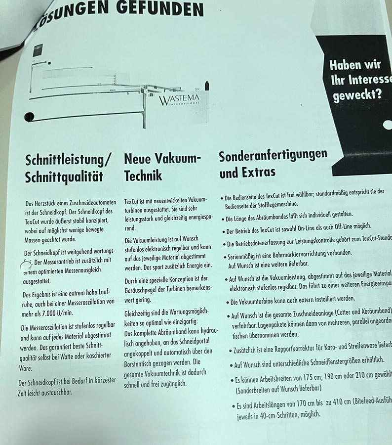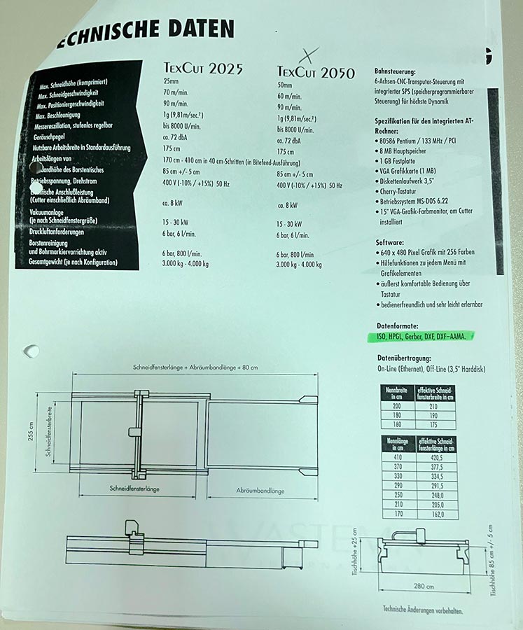 CAD Cutter Kuris/Wastema TexCut 2050 rok prod. 1998.